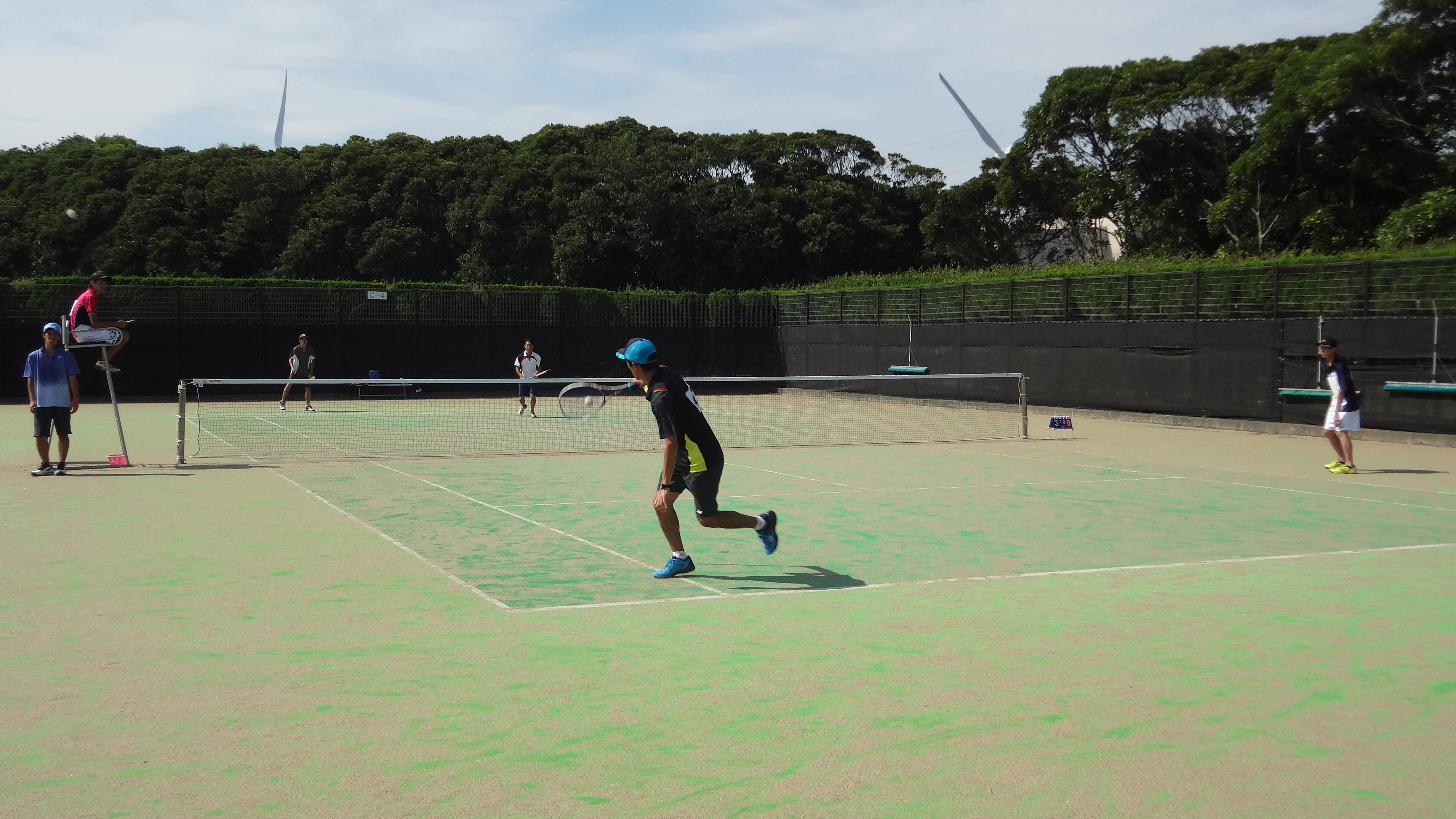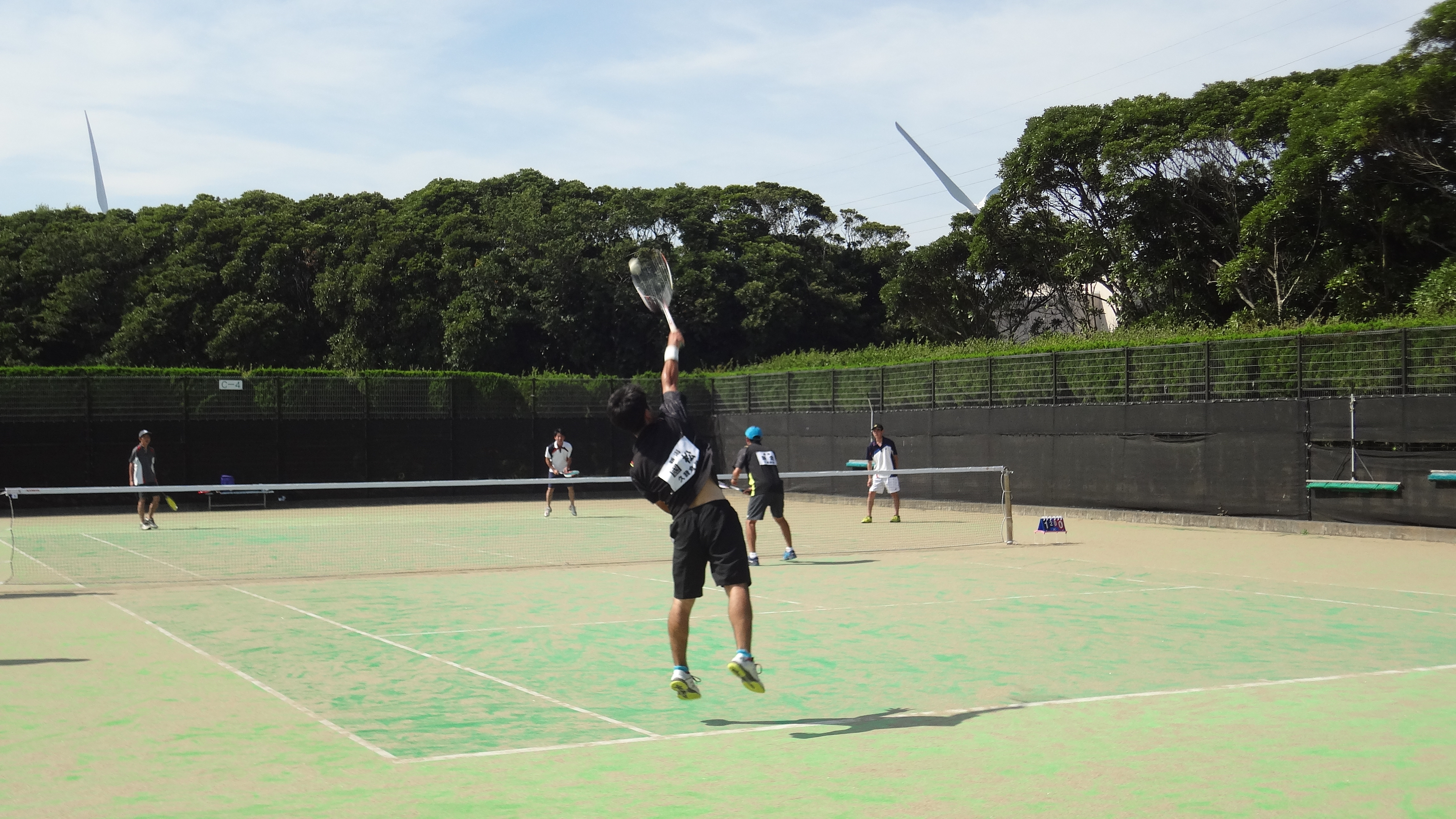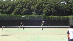 2日目の初戦となる3回戦では、明治の学生ペアを相手に、マッチポイントをしのいで、逆転で勝利しました。