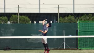1番に國松・伊比ペアが出場しG4-0 で見事な勝利を収めたものの、続く2番の村田・星野ペア・3番の中野・新倉が敗れ、チームとしては1-2で敗退となりました・・・